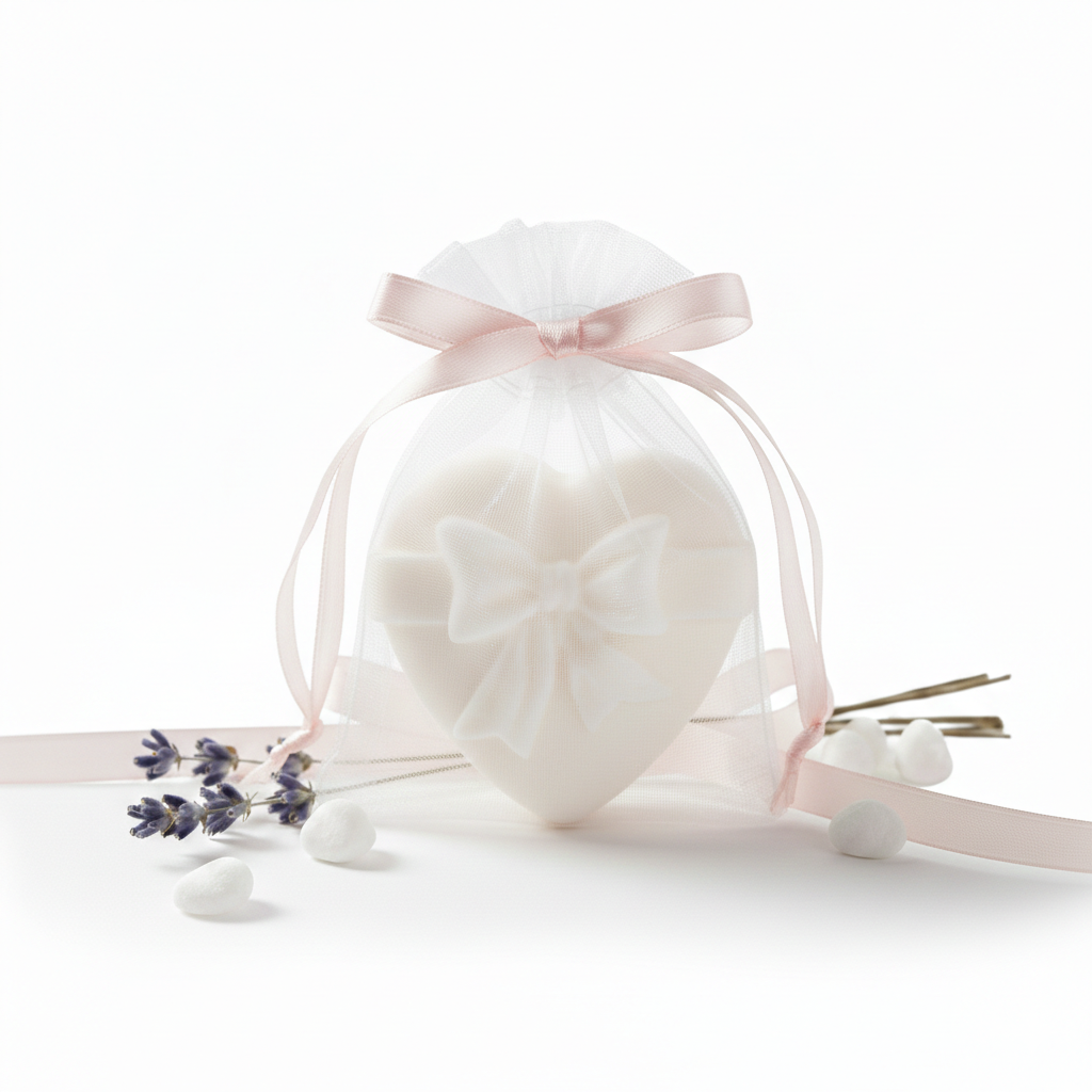 Aceasta marturie inimioara este fabricata artizanal din sapun 100 % natural, pe baza de uleiuri vegetale si parfumata cu uleiuri esentiale, oferind un miros placut si o spuma delicata. Compacta si estetica, forma de inima o face potrivita pentru utilizare ca odorizant de dulap – ambalata in saculet de organza si acompaniata de card personalizat la cerere . Fara substante chimice agresive sau parabeni, este hipoalergenica si prietenoasa cu mediul. Produsul este vegan, cruelty-free si biodegradabil – ideal pentru cei care doresc cadouri naturale si gift-uri eco-constientizate.