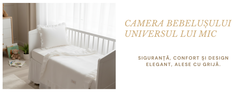 Descoperiți colecția Camera Bebelușului de la Tesoro Bebe, dedicată creării unui spațiu perfect pentru odihna și dezvoltarea micuțului dumneavoastră. Vă punem la dispoziție articole esențiale pentru o amenajare creșă sigură, funcțională și estetică. Explorați selecția noastră de lenjerii de pat din bumbac, pături muselină (vitale pentru somnul sigur), organizatoare practice și decorațiuni adorabile. Prioritizăm materialele de înaltă calitate, care oferă confort și contribuie la un mediu liniștit pentru bebeluși și copii mici. Transformați camera copilului într-un sanctuar al siguranței și al stilului.