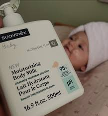 Loțiunea hidratantă Suavinex Lapte de corp hidratant oferă îngrijire completă și protecție pentru pielea fină a bebelușului, încă din prima zi de viață. Textura sa ușoară și mătăsoasă hidratează intens, calmează și protejează pielea împotriva uscăciunii, menținând-o moale și catifelată.