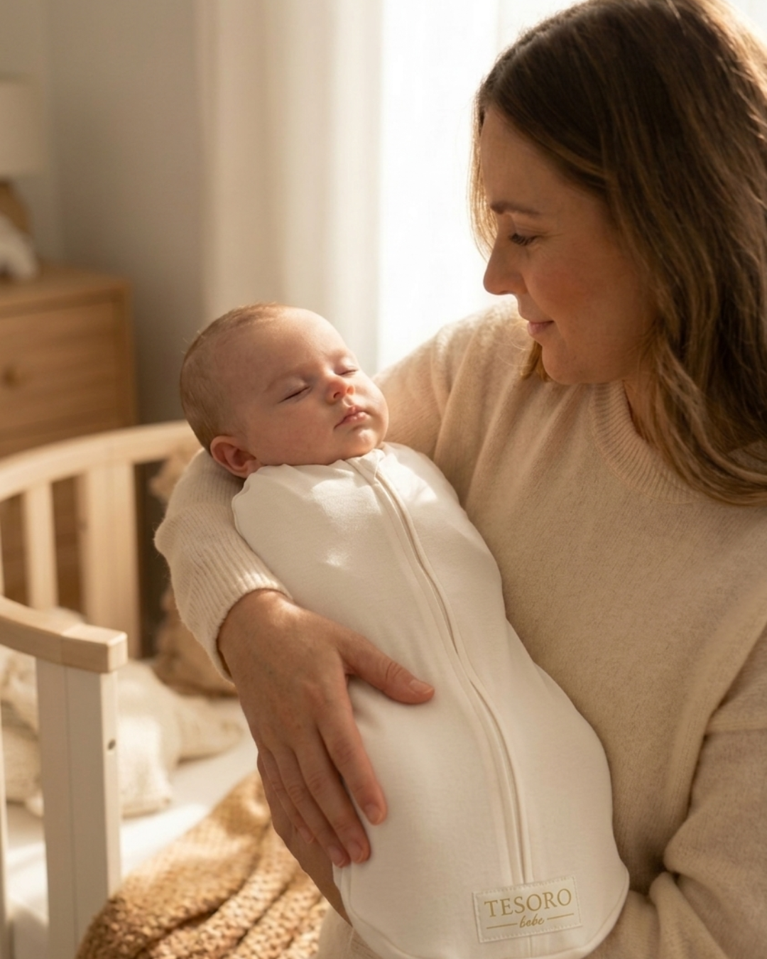 Sistemul de infasare saculet marca Tesoro Bebe, reprezinta solutia eficienta pentru un somn linistit si in siguranta din punct de vedere medical. Usor de folosit de catre orice parinte, cu sau fara experienta, acesta ofera bebelusului un confort ca in burtica mamei. Realizat din tesaturi naturale, hipoalergenice, antistatice si termoreglatoare, elimina umiditatea pentru a ajuta la reducerea riscului de supraincalzire. Jerseul din bumbac este cunoscut atat pentru finete cat si pentru elasticitatea crescuta, ce permite libertatea de miscare, mentinand totusi micutul dvs. confortabil si sustinut.